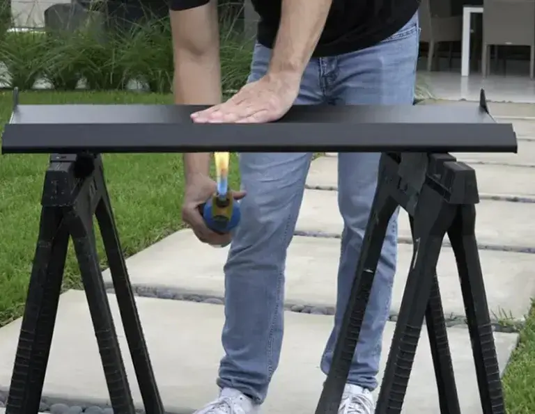 Our dual wall louver design helps limit direct heat transfer into the covered patio area. In this test, Grant applies extreme heat into the louver (and still he doesn’t get burned).